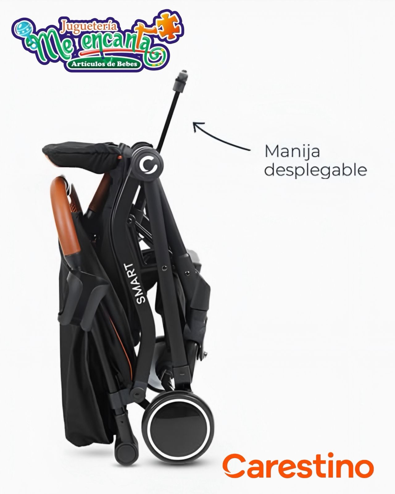 - Cuenta con un sistema de cierre ultra compacto que permite un plegado rápido con una sola mano y se convierte en un carrito tipo valija con manija retráctil para un transporte cómodo.