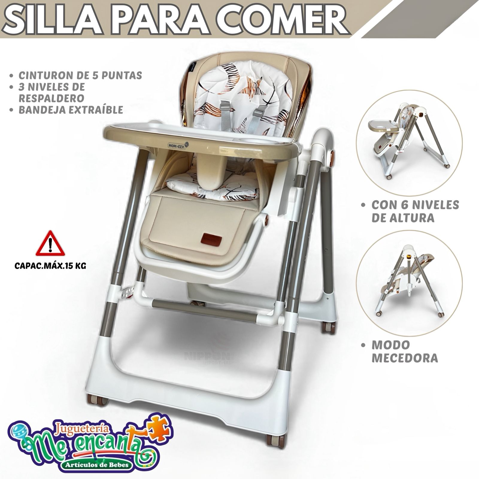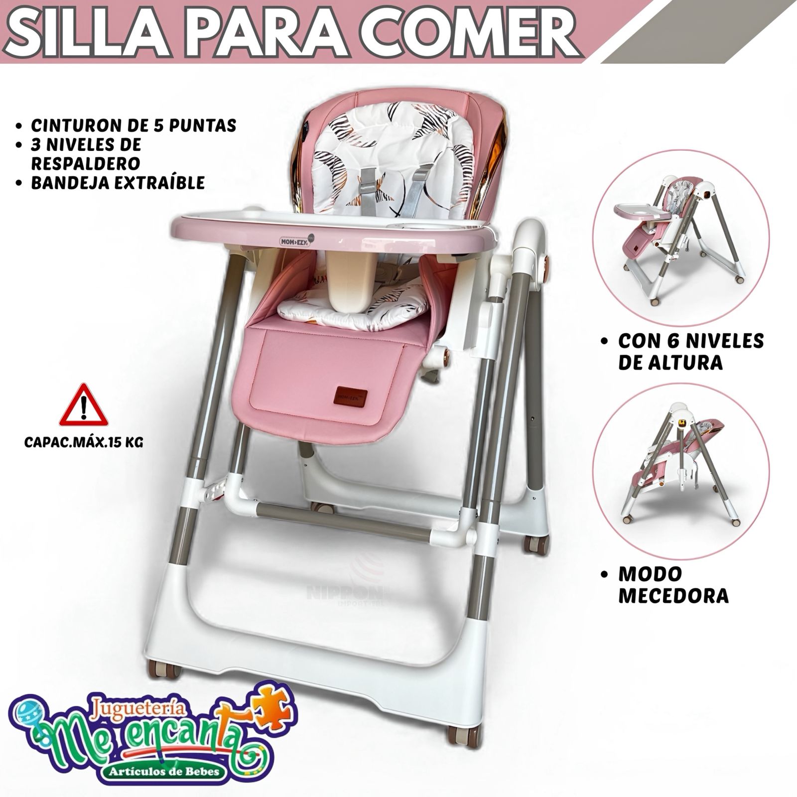 - Multifuncionalidad: Funciona como silla alta para comer y puede convertirse en una mecedora para el descanso del bebé.